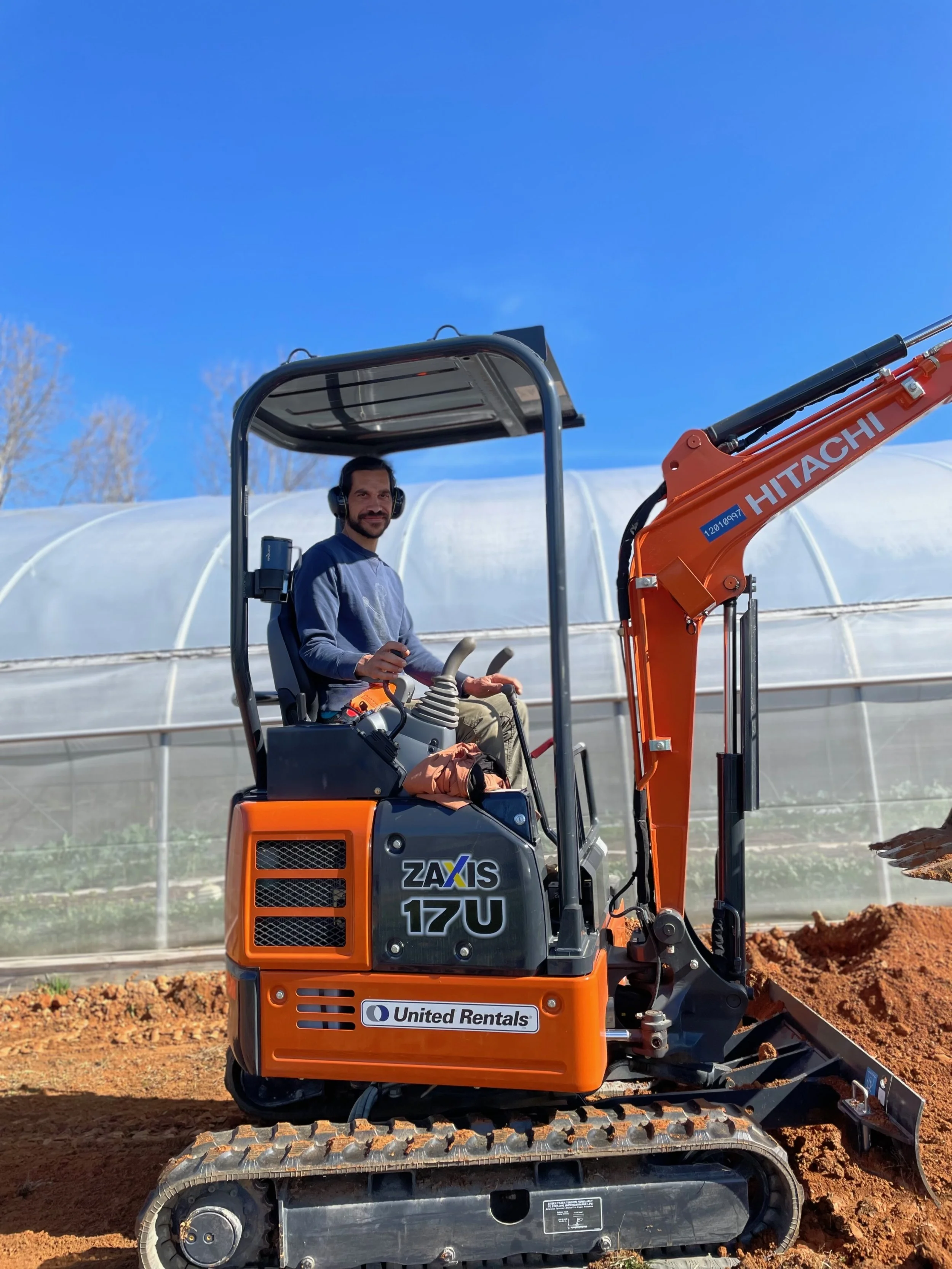 Mini Excavator with grading blade- 48” wide & great for tight spaces