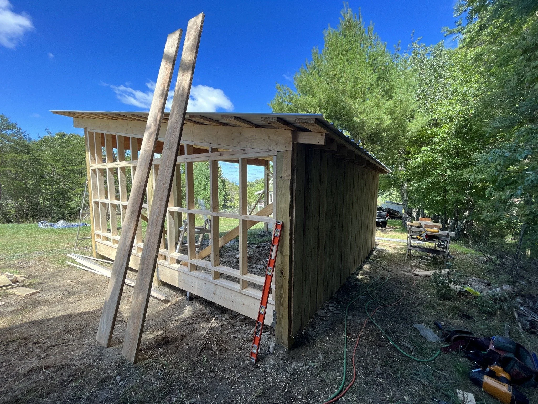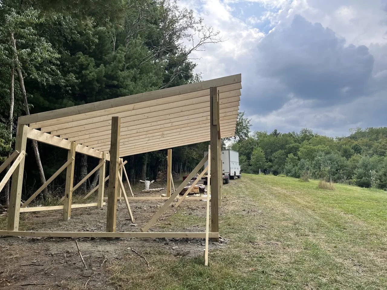 I worked with the building department to build this pole barn to code for someone who did not meet the requirements for an agricultural building. This saves time and money in extra foundation work that is really not necessary for sheltering a tractor and wood. You’d be amazed how much work can get done using this building style in just three days.
